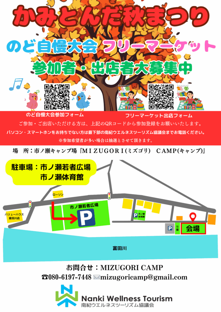 2025年10月26日(日) 市ノ瀬MIZUGORIキャンプ場にて「第3回 かみとんだ秋まつり」を開催します!!