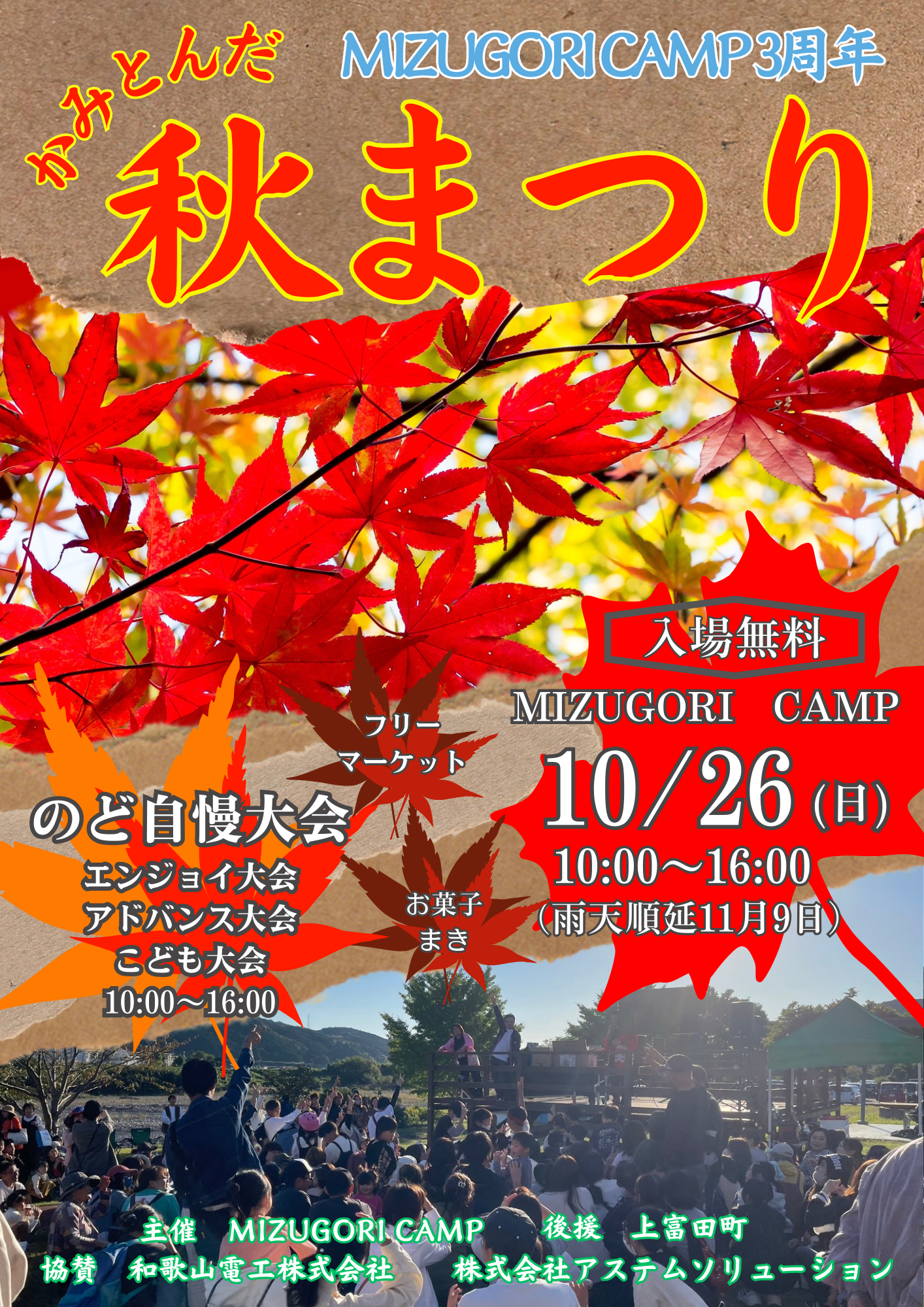 2025年10月26日(日) 市ノ瀬MIZUGORIキャンプ場にて「第3回 かみとんだ秋まつり」を開催します!!
